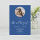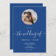 Simple elegant blue white photo script wedding invitation with this classic and elegant calligraphy the wedding of Script in blue and white Add you couple's photo in a circle mask.
