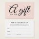 Elegant customizable gift certificate card design for beauty or fashion related professionals. Simple bold design with pastel background and bold text.
