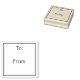 Simple elegant gift tag label rubber stamp featuring the text “to” and “from" in a red, elegant serif font surrounded by a traditional double border. Great for making your own gift labels.