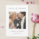 This simply chic custom photo wedding thank you card template features an elegant, minimalist, modern design. The default shape is standard sharp corners, but rounded corners also work wonderfully with this design, so try both looks and see which one grabs you! The front features your favourite photo, first names and a 'LOVE and THANKS' message conveyed with a striking blend of two distinct fonts, with 'and' in a light, flowing script between the rest of the other two words, which are in upper case with a bold, crisp formal look. The 'LOVE and THANKS' part of the design is in black and can't be edited, as it's an image. When you edit the front to show your own names, you might change the format to show your first names with last name, or 'Mr. and Mrs......' or whatever suits your style. On both sides of the card, we've set the background as transparent, so that the colour of the paper will simply serve as the base colour. You can choose a specific colour for the background on one or both sides, if you prefer. The default colour of the names text on the front is an elegant shade of burgundy and the date text on the front is standard black by default. You might chose another colour or colours for the front names and date text. The text on the back is a slightly softened black, but you can change this if you prefer another colour, and you can also change the font and text size. We've put some sample text on the back for you to replace with your own message as you see fit, but please don't feel restricted by this. If you prefer delete our sample text entirely and keep the back totally blank so that you can write a handwritten note on each card instead, you can do that. Or you might want to replace our text with your own message of gratitude and your own closing and then hand sign your names when you receive the cards. In any case, please do remember to remove all of the sample/placeholder text on both sides as well as our sample photo! We've chosen matte rather than semi-gloss as the default paper choice, as it is well suited to writing your own message on and won't smudge. You can of course change this to semi-gloss, or you might consider upgrading to something with a texture such as zazzle's 'Laid' or 'Felt White', which can add a feeling of warmth and depth. We hope you'll enjoy experimenting with various aspects of this stylish modern wedding thank you card template's appearance and make it uniquely yours with the intuitive design tools, your favourite photo and your inspiration. And please check our store for a selection of stylish modern wedding thank you cards in various formats!
