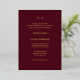 Touch of foil highlights monogram and couple's names on this simple, yet elegant traditional invitation. Lettering in light gold colour is matte on the burgundy wine background. Keeping it minimal, with typography providing visual interest.