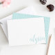 Our chic personalised stationery flat cards feature your name in elegant pale sea green aqua calligraphy script lettering at the lower right corner. Cards reverse to a delicate trellis pattern.