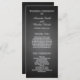 Simple Elegant Wedding Programs. White text on black chalkboard background (printed photo effect). Design by Elke Clarke © Available at www.zazzle.com/monogramgallery. Customise with your personal information to create a simple yet sophisticated program which your ushers can hand out as your guests enter the church or are seated where the ceremony will take place. It helps people follow along during the ceremony but also acts as a keepsake for your guests. You can use the template fields to fill in the suggested information about your wedding party and order of service and thank you message or select "customise it" and use the edit menu to change the text spacing, fonts, colours as you wish to create your own wedding programs.