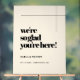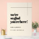 We're so glad you're here wedding welcome sign: a simple acrylic sign to welcome your guests. Easily customisable with your favourite colours.