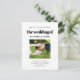 Love this invitation! The postcard is such a cute and clever idea. Exactly what I was looking for. We are having a small ceremony beachside in Punta Cana but having a reception back home in Massachusetts when we return so this is the perfect invitation to send out for our hometown reception! It’s customizable so that’s really great. It’s the size of a typical postcard. Really like how you can just put a stamp on it and send it, eliminating the need for an envelope. The only issue- and it’s a personal one- is my reception date had to be changed due to a double booking at the reception hall so I unfortunately have to have these invitations recreated with the new date. I have to toss out 144 of these beautiful invitations and that hurts!!! Wish there was a way to salvage them. Luckily my wedding is next summer (June 2020) so I have plenty of time! Great product and fast shipping. Would definitely recommend. The colors were as expected. The print was great. I chose the matte finish so the picture at the top was not as “crisp and clear” as I had wanted so on round #2 of the invitation, I am going to go with the semi gloss finish for sure!