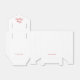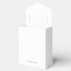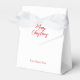 Simple elegant Christmas party favour box. Merry Christmas in modern script text on front top fold and plain traditional text field at bottom front and back for your name or personalised note. Red text on a white background.