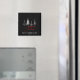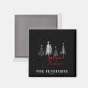 This minimalist Christmas magnet features a row of simple white pine trees against a sleek black background. The word "Merry Christmas" is written in elegant red script, and the bottom of the magnet is personalised with the family name and the year "2024." This stylish and modern design is perfect for adding a touch of holiday cheer to your home or office.
