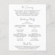 Classic black and white budget wedding program flyer featuring a simple design with a modern, minimalist touch. Accent words are in an elegant script typography and the remaing text is in a traditional serif font.