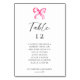 Simple and elegant pink bow coquette minimalist wedding seating chart and table number.