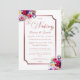 Simple Elegant Coral Pink Floral Script Beautiful watercolor burgundy deep coral red, violet, and pink floral design with metallic pinkish coral frame. Burgundy Pink Red Violet Floral Rose Wedding Invitation. Customise with your wedding text. The design features the bride and groom's names in an elegant great vibes script font. Shown in black and white but can be customised to your wedding colours for the text and background. Add any other graphics, text, or monograms to your personalise this template.