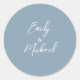 Simple Elegant Dusty Blue Script Minimal Wedding Classic Round Sticker