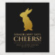 Simple "Somebunny Says Cheers" Easter personalised wine label with gold silhouette bunny and elegant typography in black and gold. Modern, classy and luxurious. Perfect for Easter parties or Easter gifts. Customise with short greeting and name.