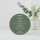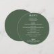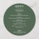 A round dinner menu card on evergreen (or any colour) and chic lettering in white displays your menu choices. Perfect for a holiday Christmas party or any special event with a sit down dinner menu. Choose ANY COLOR BACKGROUND, any COLOR TEXT, any FONT! Easily personalise with your dinner menu and details.