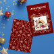 This simple yet elegant family 1 photo frame holiday card in dark red features line art illustrations of a poinsettia flower, holly and berries, snowflakes, candy cane, bells, stars, gingerbread cookies and much more. The back of the design features a pattern of the same illustrations. You can modify all the text and add your own photo. See the whole matching collection.