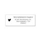 This minimalist design features your family name and return address in elegant, vintage typography and a small heart on the side. Make it unique to you by clicking on the ´´Personalise´´ button and changing the details to your own.