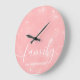 Simple Elegant Family Text Pink Large Clock