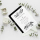 This simple and elegant wedding invitation is perfect for a modern event. It features hand-drawn flowers and leaves surrounding a formal font with a classic feel. The colour scheme includes black and white. It's modern, minimal, unique, and pretty; the perfect design for your special day.