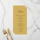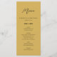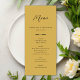 This modern, minimalist fall wedding reception menu card offers a simple clean layout on a gold background. The design offers space for you to add your wedding reception menu items along with the names of the bride and groom and their wedding date.
