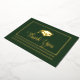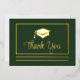 Simple, elegant and modern dark green graduation "Thank You" with real gold foil front grad cap and text with rectangular frame and double bottom lines and back black text postcard design with back template for return address. Original design by Holiday Hearts Designs (all rights reserved).