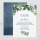Boxwood greenery at top and accented at bottom. Navy blue templates created for you to simply fill in. On back is a simple white framed piece of greenery with a blue green background.