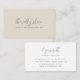 Elegant and simple business cards for any occupation feature two lines of text in soft classic grey, with your name or business name in stylish hand lettered calligraphy script lettering on a light almond taupe background. Customise the back with your full contact details.