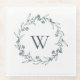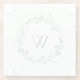 Simple Elegant Grey Floral Laurel Wreath Monogram Glass Coaster
