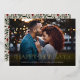 This beautiful holiday photo card features stylish, modern typography on the bottom, reading, "Happy Holidays" in real gold foil. A dark gradient overlay allows the text to stand out against any photo. The back of the card contains a hand drawn floral and greenery pattern in traditional colours of deep green, burgundy red, and ivory over a sand beige background (background colour can be customised, if desired).