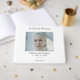 Honor a beautiful life with this modern minimalist funeral photo guest book featuring a cherished photo and the timeless phrase “In Loving Memory.” Simple and elegant funeral guest book featuring clean script typography, a photo template, a subtle scroll line accent and comforting saying on the back. Designed for memorial services, sympathy keepsakes, remembrance cards, and celebration of life events. Easily customizable for your memorial event. Timeless minimalist memorial stationery. You can find other tastefully designed funeral stationary and signs in the Modern Minimalist In Loving Memory Collection in The Gathering Designs store.