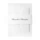 This belly band is designed to bundle your invitation and enclosures giving a formal feel and sophisticated look. The design is simple and timeless with the names of the couple written in lace script black lettering on a white background. Beautiful addition to your invitation suite.