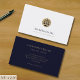 Stand out with these high-quality business cards featuring a striking gold emblem of the scales of justice with your firm name and tagline. This double-sided design features a rich navy blue back with space for an individual name, title, and contact information in classic golden typography. Ideal for attorneys and legal services to network and introduce their professional identity.