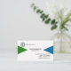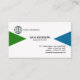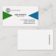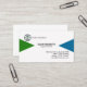 Design features a white card with a two triangles at opposite ends. On the left is a green triangle, whilst on the right is a blue one. Above the green triangle are your logo and business name. Resting between the triangles sits your name and position. Contact details are at the lower right hand corner. Simple, plain, precise and neat. This card would be suited for Sales, Marketing, Distribution and Logistics.