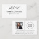 This simple elegant professional business card features a modern black and white theme which you can change if you wish for any other colour. The minimalist front of the card features your name in large classic typography and additional text in smaller font with a chic hand-drawn botanical branch above. The reverse of the card contains your custom logo and photo, and contact information written in clear lettering. Create your own modern elegant business card by clicking on the ´´Personalise´´ button and replacing the template text with your own info. To change the colour of the background, click: ´´Edit further´´´. This business card is perfect for small businesses and freelancers.