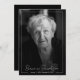 Celebrate the life of your loved one with this simple, minimalist, and elegant Celebration of Life memorial service invitation. The design highlights a single photo with a customisable black and white filter, complemented by a subtle black gradient at the bottom for an elegant touch. A simple white border adds a special element. The fonts combine script typography with classic serif lettering for a refined, tasteful look. The back of the invitation features a black background with white fonts, providing space for a short obituary or to share memories, along with details about the celebration of life event. All text can be personalised, and the background colour can be adjusted as needed. Celebration Of Life Elegant Memorial Service Invitation. Available as a printed invitation, or as a downloadable digital invite that you can send in e-mail or have printed locally!