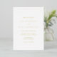 Classic style gold foil wedding invitation featuring a simple, traditional design with a modern, minimalist touch. Accent words are in an elegant script typography and the template can be updated for a formal wedding.