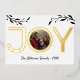 A Christmas foil card decorated with the word JOY in gold, silver or rose gold foil, branches with leaves and berries and your message in stylish black. Fill the O with a photograph of your choice. Simple, elegant, and minimalistic design in black and foil on a white background.