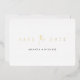 This simply chic wedding save the date flat card template features an elegant, minimalist, modern design. The front features a 'save the date' message in elegant gold foil that's conveyed with a striking blend of two distinct fonts, with 'the' in a light, flowing script between the rest of the message, which is in upper case with a bold, crisp formal look. Below it, your first names text is black by default, though you can change this test to another colour or font to suit your style when you edit it to show your own names. And on the back you can of course in addition to replacing our sample info with your own, delete text fields that you don't need, or change the wording, as well as change font, size and colour. The default text colour on the back is black. The default background colour on both sides of this card is set as transparent, to let the paper colour simply serve as the base tone. But you can edit this and change the look of one or both sides in this regard as well. Customise this elegant minimalist wedding save the date flat card template with zazzle's intuitive editing tools and your inspiration and make it uniquely yours!