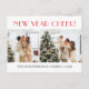 Simple Elegant Modern Happy New Year Two Photo Holiday Postcard