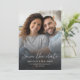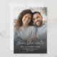 The front of the card showcases your cherished photo, with "Save the date" beautifully written in an elegant calligraphy script in white on an shaded overlay. It also includes the first names of the couple, the location, and the date, making it clear and memorable for your guests.