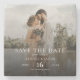 Simple modern wedding save the date coaster with full photo and elegant typography.