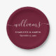 Simple Elegant Modern Script Burgundy Wedding Paper Plate