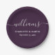 Simple Elegant Modern Script Purple Wedding Paper Plate