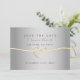 Simple, modern, elegant, typography, tying the knot silver grey wedding save the date invitation, with modern script and faux gold rope heart.
