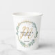 Simple, elegant, monogram, eucalyptus wedding paper cups