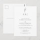 Budget Elegant and minimalist simple wedding postcard invitation. Simple and classic monochrome design with simple foliage illustration.