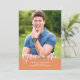 Simple Elegant Photo Graduation Announcement with a sleek and simple vertical design in orange. Add a photo and graduation details to customise. Background colour on back side of invite may be changed to complement the photo or to add a school colour.