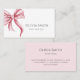 Simple and elegant business card with a pink bow on one side and modern typography. Illustrated and designed by Patricia Alvarez.