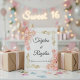 Simple Elegant Pink Rose Gold Floral Quinceañera Pedestal Sign