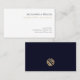 Make a lasting impression with our Simple Elegant Professional Business Cards featuring classic typography on a clean white background. The back features a striking gold geometric emblem logo on a sleek navy blue background. Perfect for any business professional looking to make a lasting impression.