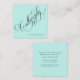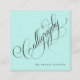 A simple and elegant business card for the Calligrapher, this stylish square business card design has beautiful calligraphy script type face spelling out the word "Calligraphy" diagonally across the card with lovely glyphs and flourishes. The background colour of the card is a pastel robin egg blue. Personalise with your business information. You can change the wording using the easy to use text template. To make additional edits, choose "click to customise further" at the bottom of the text template.