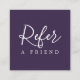 Simple square purple and white referral card for beauty related professionals. Simple clean design, fully customisable.